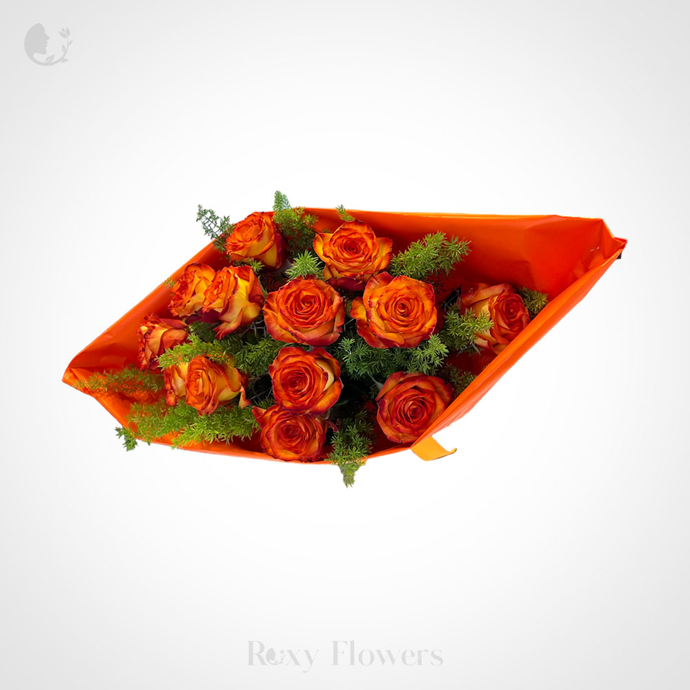 Buchet floral cu 13 trandafiri portocalii – o expresie a căldurii și a frumuseții naturale, conceput pentru a aduce un strop de culoare și bucurie în viața celor dragi. Cu o selecție îmbietoare de trandafiri portocalii, acest buchet emană eleganță și farmec într-un mod subtil și captivant.
